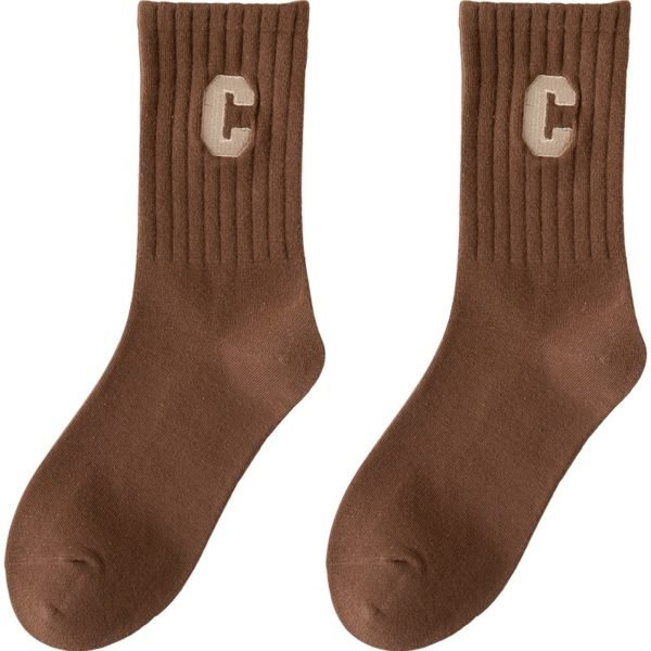 Pure Color Thick Socks With Embroidery Logo