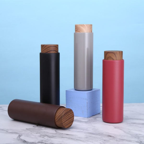 13oz Multicolor Stainless Steel VacuuBottlesith Wood Grain Lids