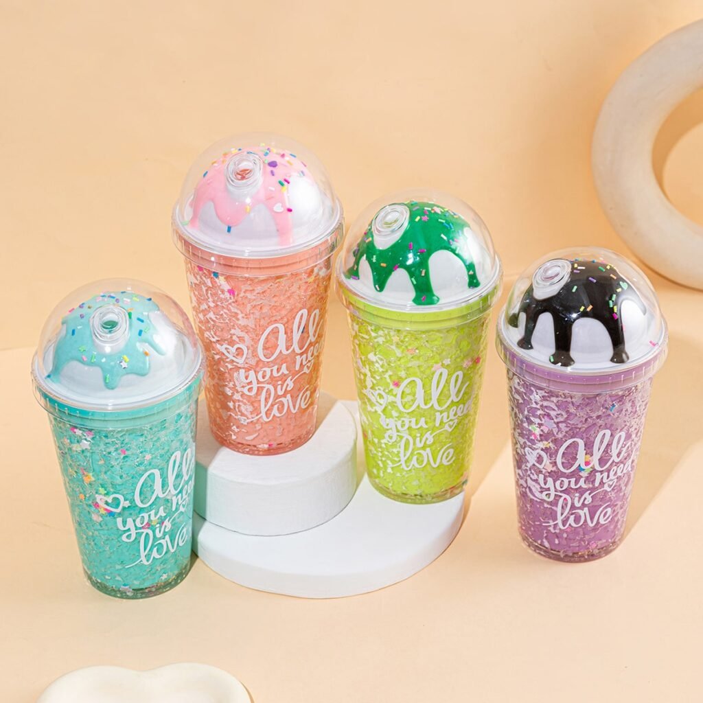 Creative Heart Shaped Plastic Straw Mugs Valentine- Day Straw Cups