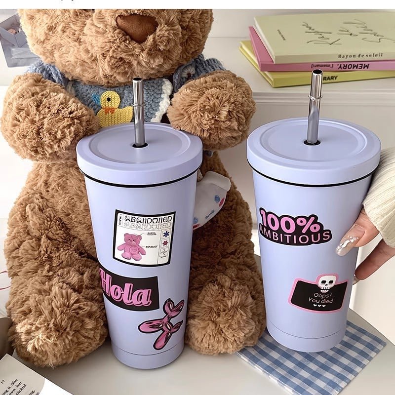 Double-layer Plastic Straw Cup Heat-insulated Cute Handful Strawing Bottle