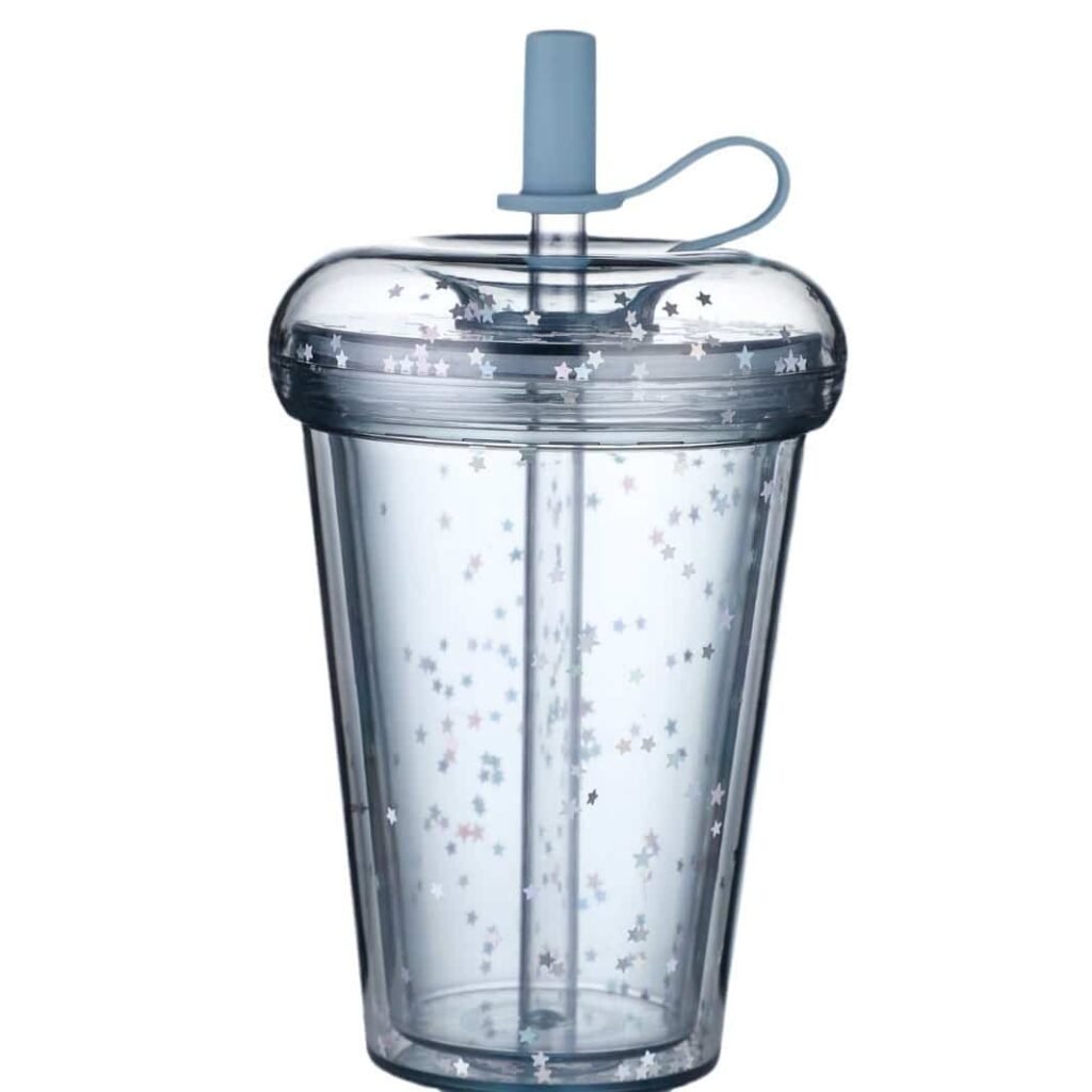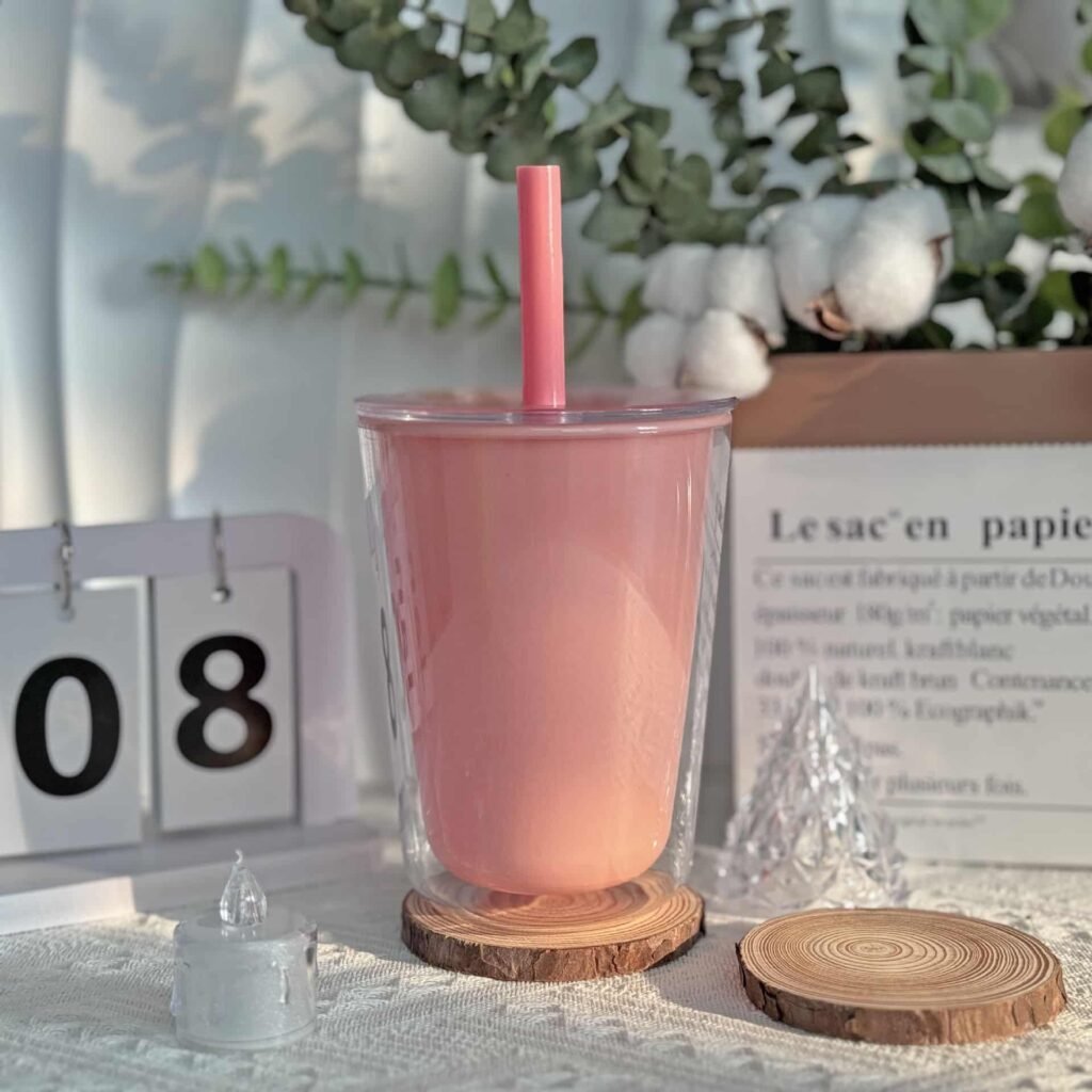 Double-layer Plastic Straw Cup Multi-color Outdoor Water Mug