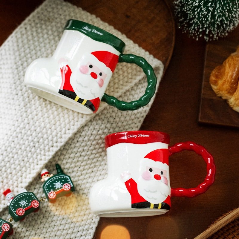 Santa Claus Stocking-Shaped Ceramic Mug