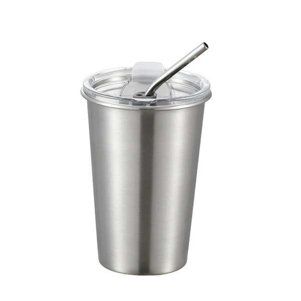 Single Wall 304 Stainless Steel 17 oz Beer Cup with Lid and Straw