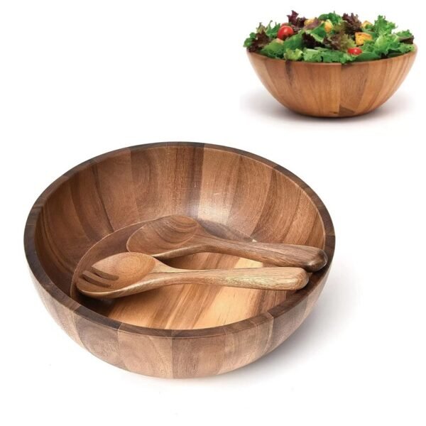 Engraved Wooden Salad Bowl With Wooden Spoon & Fork