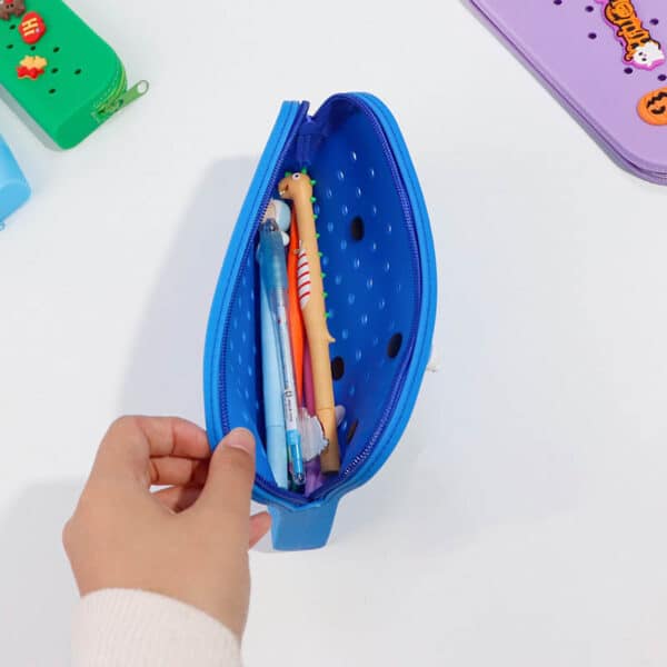 Shoe Shaped Silicone Hole Pencil Case With Custom Charms