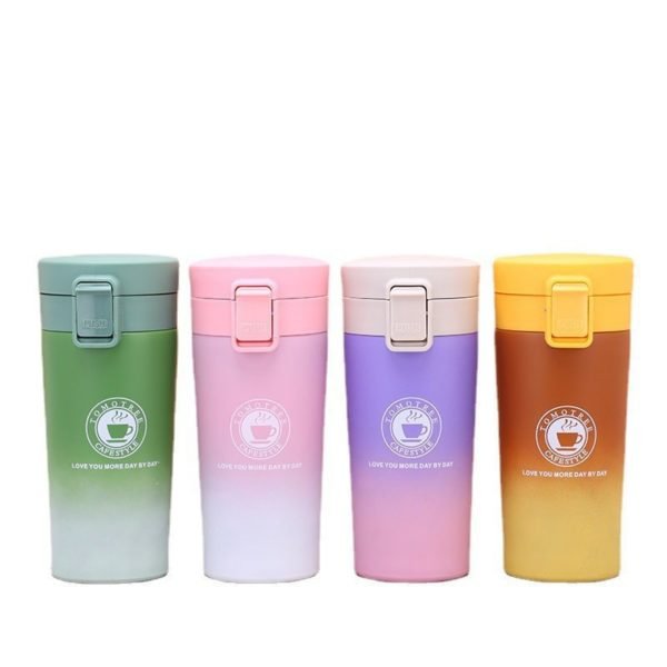 Please let this water bottle accompany your work and life every day. Food grade material, safe to drink. Safety and environmental protection. This bottle can be used to hold coffee, soft drinks, milk and other drinks. Used in various indoor and outdoor places. Green, orange, purple, pink, brown colors are available. The lid is tight to prevent leakage of liquid. Can customize logo, slogan, pattern, company design. Made from stainless steel material, measuring 13oz, this custom 13 oz gradient color 304 stainless steel coffee bottle. Usage Scenarios: Office supplies, school stationery, corporate promotions, trade show giveaways. Tailored branding: Supports logo imprint and design personalization. Product Highlights: BPA-free, leak-proof, travel-friendly.