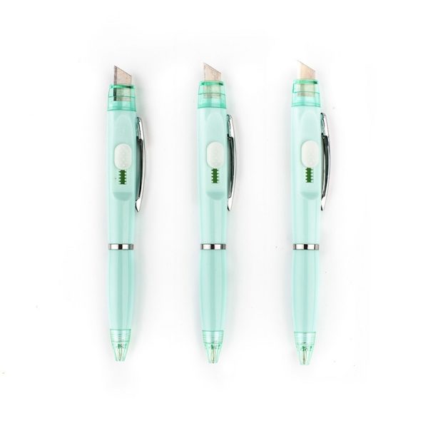 A universal pen that turns into a knife and pen with a button, A knife and pen can be used anywhere, anytime. There is no need to worry about pencil cases and pencil flowers without space anymore. You can use a knife by raising the button one up, and a ballpoint pen lead by lowering the button one down. Made from plastic material, measuring 5.12*0.47 inches, this custom 2-in-1 ballpoint pen w/box cutter knife. Usage Scenarios: Office supplies, school stationery, corporate promotions, trade show giveaways. We offer logo printing and full packaging customization. Product Highlights: Sleek design, durable build, easy to grip.