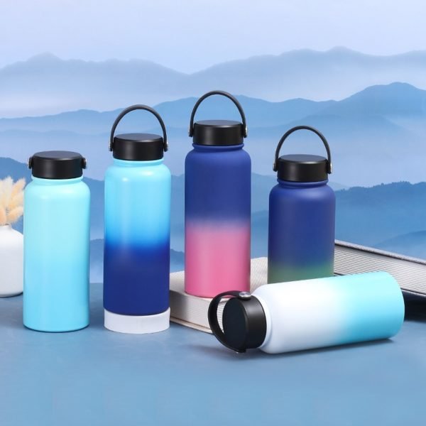 This water cup is made of 304 stainless steel inside and 201 stainless steel outside and is vacuum insulated. Built-in silicone sealing ring, inverted no water leakage. Smooth the mouth of the cup with fine grinding, drinking water will not hurt the mouth. Non-slip stable bottom, quiet and smooth placement, not easy to dump. Portable design, easy to carry.Suitable for sports, fitness, school, home and other occasions. Measuring 26oz/35oz, this custom 20oz sports tumbler with carrying handle vacuum gradient. Usage Scenarios: Office supplies, school stationery, corporate promotions, trade show giveaways. Customization available: Print your logo or customize packaging and color schemes. Product Highlights: BPA-free, leak-proof, travel-friendly.