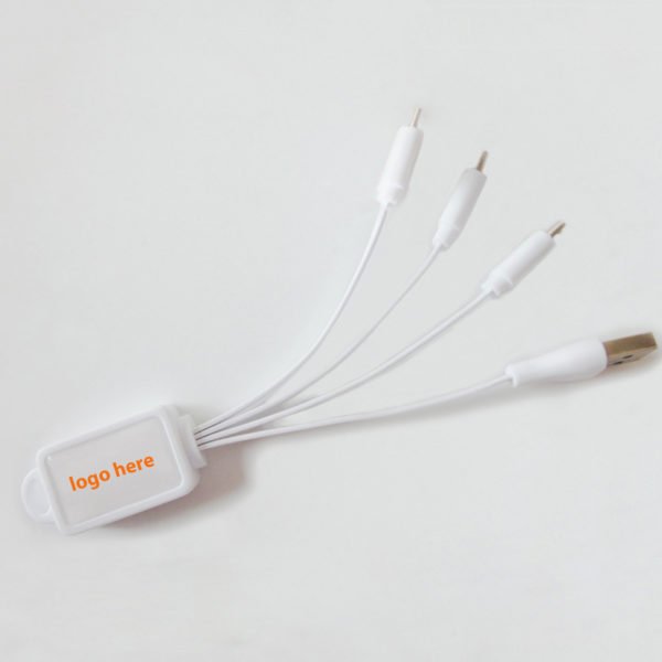 Customize with your company logo for a great brand publicity.4 in 1 multi charge buddy, Noodle multi charge buddy is lightweight and compact.So,it is a good travelling and office partner. Multi charge buddy contect with your laptop or power bank for your phones or electronics charging Charge buddy plugs include USB,TYP-C,LIGHTING and USB. Your logos can be imprinted on flat plastic keyring,charging buddy is a good promos and advertising item. Great ideal for business,conference,office,meeting,working,restaurant,school,test field,business travel and many more! Made from pvc material, measuring 5.5 inches, this custom 4 in 1 charging buddy cable with logo.