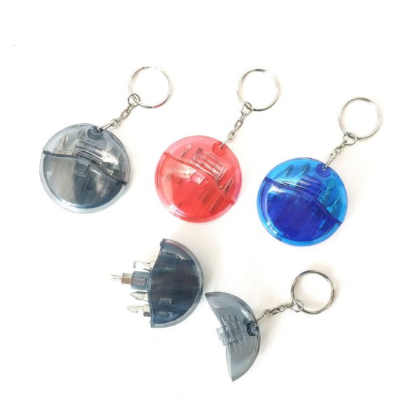 Our 4-in-1 Screwdriver Tool Set Keychain with split key ring. Solid ABS construction with Phillips and two slotted screwdrivers. Large imprint area. Ideal for transportation, key holder, travel, camping, tooling, real estate and self promos. Color and logo can be custom. Made from plastic& metal material, measuring 2 inches dia, this custom 4-in-1 screwdriver tool set keychain. Usage Scenarios: Office supplies, school stationery, corporate promotions, trade show giveaways. Tailored branding: Supports logo imprint and design personalization. Product Highlights: Portable, durable, practical for daily use.