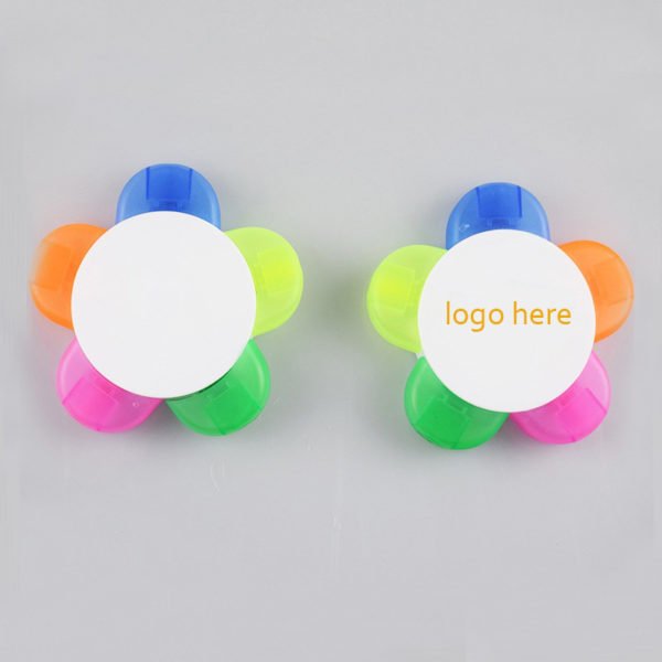 Make customers smile and promote your brand by handing out this bouquet of highlighters! Designed to look like a star, the frosted plastic case houses 5 neon highlighters. Each petal contains one color cap and matching ink green,blue,orange,yellow and pink. Office tasks will move along much more smoothly when supplies are all in one convenient place, plus you- l save space on your desk! Add a logo or company name to the large imprint space and chisel tip and hand out this product at the next promotional event! Made from pvc material, measuring 3.8 *3.8 inches, this custom 5-in-1 five color fluorescent star shaped highlighter. Usage Scenarios: Office supplies, school stationery, corporate promotions, trade show giveaways. We offer logo printing and full packaging customization. Product Highlights: Portable, durable, practical for daily use.