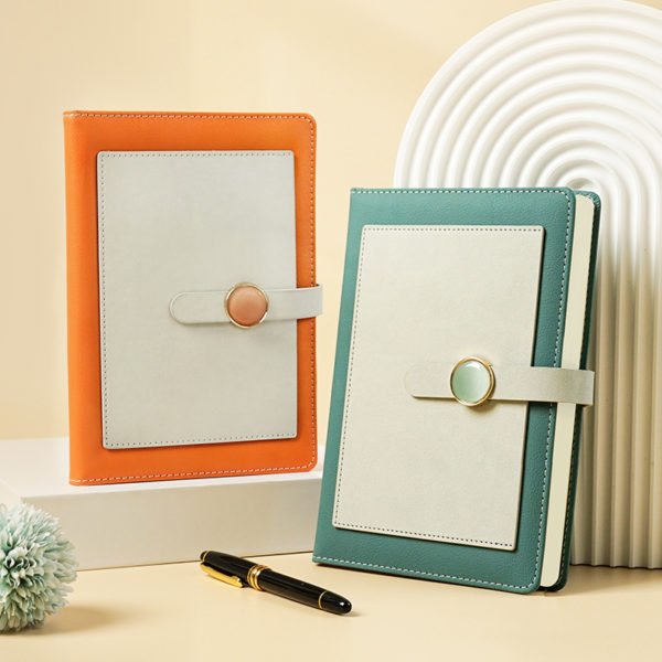 Various colors are available to meet different people’s aesthetic requirements. Standard writing spacing of 20 lines design, not crowded, free to write. Thickened Dowling paper, smooth writing, not easy to bleed ink, beige color is not easy to shake eyes. Color-coordinated card case design on the cover, is simple and practical. Ribbon bookmark design, easy to find and mark. Thickened yellow Dowling paper, smooth writing, not easy-to-bleed ink. Drip molding buckle design can be customized with colorful patterns. High-quality color-changing leather, waterproof and moisture-proof, good-looking embossing. Since it is widely used in companies and businesses, advertisements also appear on top of the book. The notebook is suitable for giving away in large quantities to increase the publicity effect, so at exhibitions, many companies print their logos on the notebook to achieve the purpose of publicity. Measuring 5.83*8.35 inches, this custom a5 colorblock pocket drip notebook. Usage Scenarios: Office supplies, school stationery, corporate promotions, trade show giveaways. Customization available: Print your logo or customize packaging and color schemes. Product Highlights: Writable surface, lightweight, recyclable paper.