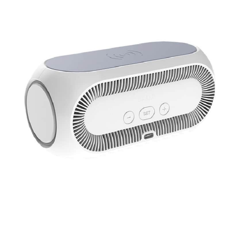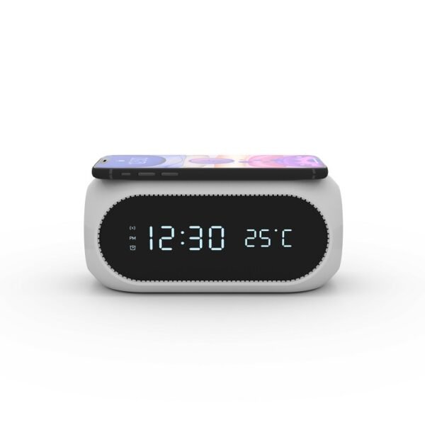 Introducing our Customizable Logo Alarm Clock, the perfect blend of functionality and branding. This alarm clock is designed to not only keep time but also to promote your brand, business, or personal style with a sleek and modern design. The face of the alarm clock can be customized with your company logo or personal emblem, ensuring that your brand is always visible and remembered. Keep your brand top of mind with constant visibility on a daily necessity. Made from abs material, measuring 6.3*3.07 inches, this custom alarm clock with wireless speaker & wireless charger. Usage Scenarios: Office supplies, school stationery, corporate promotions, trade show giveaways. We offer logo printing and full packaging customization. Product Highlights: Compact size, lightweight, easy to carry.