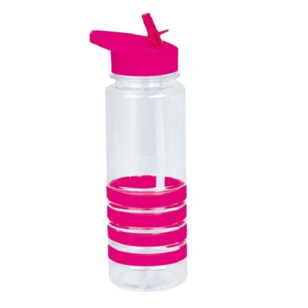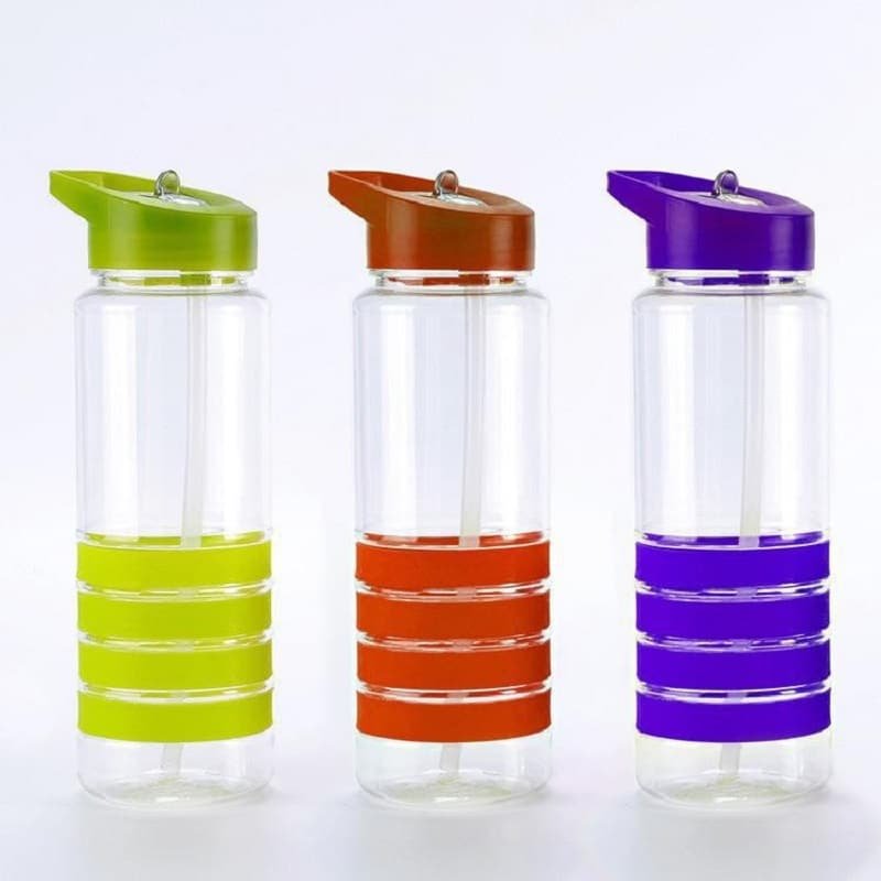Banded Gripper Plastic Water bottle is an excellent drinkware to hold, drink from and refill in daily life. Made of silicone and plastic, this 25 oz. capacity water bottle is lightweight and durable. The retractable spout with straw prevents spills and splashes. Measures in ounces, making it easy to calculate water or juice intake. Comes with a carrying handle for hanging from your bike or fingers. Ideal for the gym, weight loss programs and outdoor activities.