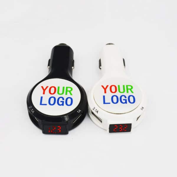 Charge up your essential devices while driving to work, school or around town with this promotional car charger. Perfect for commuters, this USB car charger measures 3- x 1.38- x 0.56- and features 2.1 Amps and two ports to charge multiple devices at once. Add a brand name, logo or message to customize! Made from plastic material, measuring 0.5*3*1.375 inches, this custom bulb car charger. Usage Scenarios: Office supplies, school stationery, corporate promotions, trade show giveaways. We offer logo printing and full packaging customization. Product Highlights: Compact size, lightweight, easy to carry.