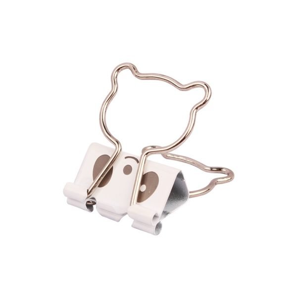 Imprint these mighty binder clips with your logo!It is made of metal and measures 1.40 inches*0.79 inches.It comes with colored paint finish and it – designed with a metal bear shaped handle which provides a sturdy grip on this powerful binder clip.The strong metal spring and the rectangular clamp end help it hold a stack of papers, coupons, lists,receipts or memos tightly.The surface of the clamp can display your logo properly.Custom your logo,slogan or brand message and offer a great promotion for tradeshows or business fairs. This custom cartoon bear shaped metal binder clip paper clamp. Usage Scenarios: Office supplies, school stationery, corporate promotions, trade show giveaways. Customization: Logo printing available with multiple packaging and color options. Product Highlights: Writable surface, lightweight, recyclable paper.