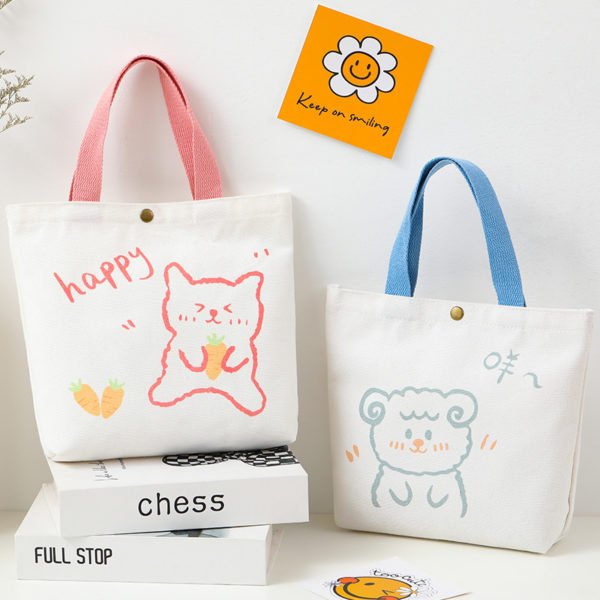 Let this bag accompany you every day of your life. Simple design with fresh colors. A variety of colors are available. It can be used both students and office workers. It can be used indoors, outdoors, in schools, offices and dormitories. Slogans, patterns and logos all can be customized. Add your business logo, advertising slogan, or custom artwork prominently displayed on the product. Place your order today! This bag is sure to give you satisfaction Made from stainless steel material, measuring Length10.3in;Width8.3in;Height2.4in, this custom cartoon canvas tote gift bag wholesale. Usage Scenarios: Office supplies, school stationery, corporate promotions, trade show giveaways. Customization: Logo printing available with multiple packaging and color options. Product Highlights: Eco-friendly material, reusable, foldable for storage.