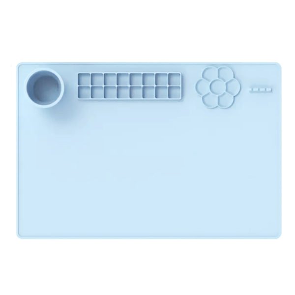 This silicone color mixing painting mat is made of 100% food-grade silicone, soft, non-stick, waterproof, heat-resistant, non-fading, non-staining, durable, and not easy to deform or tear. Each silicone mat has 16 paint lines, which can hold multiple colors separately, and a petal color mixing area, so you can mix colors with confidence. There is also a collapsible brush cleaning cup to clear brushes in time. With a brush holder design on the side, easily place the brushes, take, and paint. Washable and easy to clean. Easy to fold or roll up, takes up little space, easy to store and carry. Measuring 23.62*15.75 inches, this custom creative color palette painting pad. Usage Scenarios: Office supplies, school stationery, corporate promotions, trade show giveaways. We offer logo printing and full packaging customization. Product Highlights: Writable surface, lightweight, recyclable paper.