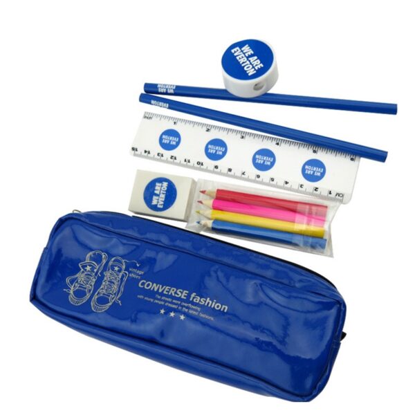 Printing your brand on this stationery set is sure to please all writers. The bag is made of high-quality PVC, transparent and beautiful, not easy to break, and can be used repeatedly. This handy stationery set includes pencils, erasers, rulers, pencil sharpeners, and more. Print your company’s name or logo on the pencil case and use this stationery set to promote new charter schools, bank branch openings, professional offices, distribution companies, and more! Measuring 9*2.75 inches, this custom creative pvc zipper pen pouch stationery set. Usage Scenarios: Office supplies, school stationery, corporate promotions, trade show giveaways. We offer logo printing and full packaging customization. Product Highlights: Sleek design, durable build, easy to grip.