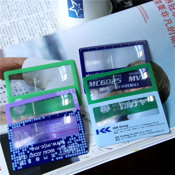 This credit card sized magnifier can slip right into a wallet.It’s lightweight and portable so it can be used for many occasions such as school study, exploring nature, viewing documents, reading labels and maps.It leaves enough imprint space for your logo so a better brand publicity can be achieved.Various colors are available.It’s a ideal gift for clinics, health care centers, trade show promotions. Made from pvc material, measuring 3.4 inches x 2.1 inches, this custom credit card magnifier. Usage Scenarios: Office supplies, school stationery, corporate promotions, trade show giveaways. We offer logo printing and full packaging customization. Product Highlights: Portable, durable, practical for daily use.