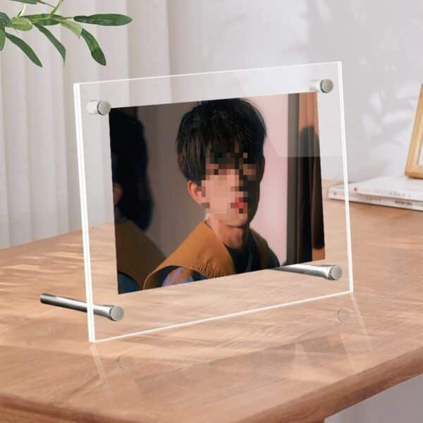 Acrylic material, transparent three-dimensional frame, with silver-white metal bracket, the frame is translucent and bright, no impurities, put in a variety of photos look good. Simply a photo frame, easy to create a full sense of ceremony. Imported acrylic material, durable, wear-resistant surface, curved corners will not appear cracks, good use. A wide range of uses can be placed on business licenses, authorization certificates, people’s photos, patent certificates, graduation certificates, celebrity posters, and so on. Polished edges to prevent scratches, fine treatment of corner details, does not hurt your hands. Measuring 5.98*7.99 inches, this custom crystal clear acrylic photo frame stand. Usage Scenarios: Office supplies, school stationery, corporate promotions, trade show giveaways. We offer logo printing and full packaging customization. Product Highlights: Portable, durable, practical for daily use.