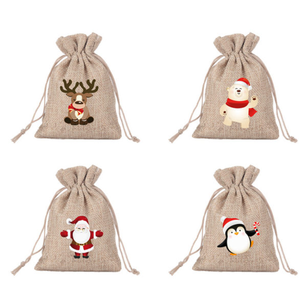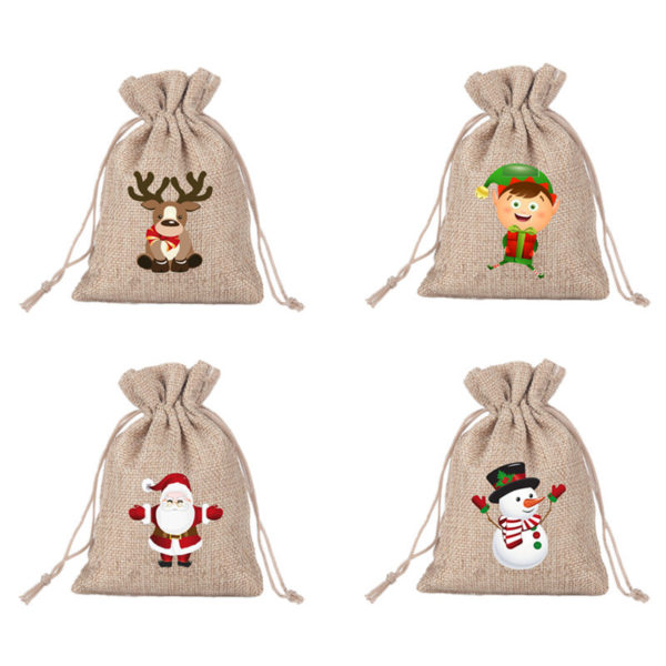 It’s an ideal handout for hospitals, clinics and other medical facilities.Special gift bags for Christmas.The gift bag is made of white drawstring, which is a kind of drawstring bundle pocket.Our Christmas drawstring gift bags are printed with traditional Christmas images, such as Santa Claus, Snowflakes, Christmas tree, reindeer, bell, etc., which cater to the theme of Christmas.The color of these large Santa gift bag is classic Christmas red and green which will enhance the joyful atmosphere of your sweet Christmas.A great Christmas gift bag. Made from hemp material, measuring 3.9*5.5 inches, this custom custom christmas theme sackcloth drawstring candy pocket. Usage Scenarios: Office supplies, school stationery, corporate promotions, trade show giveaways. We offer logo printing and full packaging customization. Product Highlights: Portable, durable, practical for daily use.