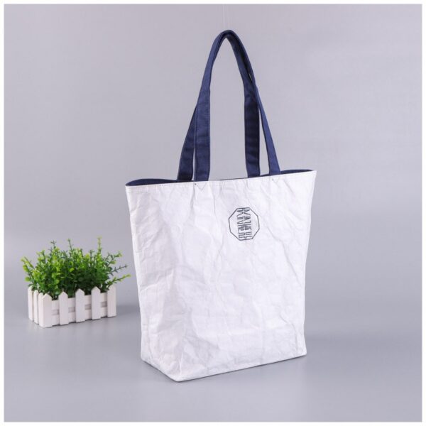The bag is made of premium Dupont paper. Paper bag is environmentally degradable and safe for food. Dupont paper is a material that features all the best properties of paper, film, and fabric, but also provides unique beauty and strength. The bags are with handles, easy for you to carry. It can accommodate your magazines, pencil cases, mobile phones, wallets, keys ?C enough to meet your traveling needs. Your logo can be imprinted on it. Measuring 12.59*14.96*3.93 inches, this custom custom dupont paper tote bag washable cowhide. Usage Scenarios: Office supplies, school stationery, corporate promotions, trade show giveaways. We offer logo printing and full packaging customization. Product Highlights: Eco-friendly material, reusable, foldable for storage.