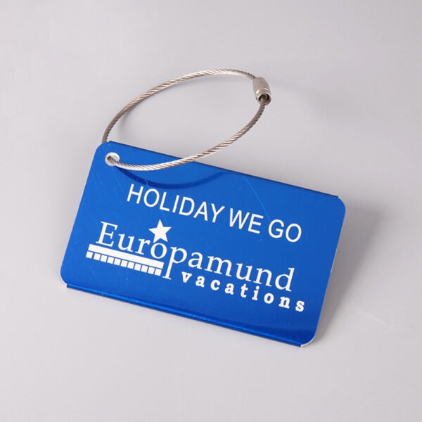 This is a rectangular aluminum alloy luggage tag. It includes owner information sheet and an attachment loop that attaches to a suitcase, briefcase or a laptop bag. Great gift for travel agencies, travel conventions, fitness centers, give away, safety program, emergency, and self promos. Measuring 3.14*1.77 inches, this custom customized beveled aluminum alloy luggage tag. Usage Scenarios: Office supplies, school stationery, corporate promotions, trade show giveaways. Customization available: Print your logo or customize packaging and color schemes. Product Highlights: Portable, durable, practical for daily use.