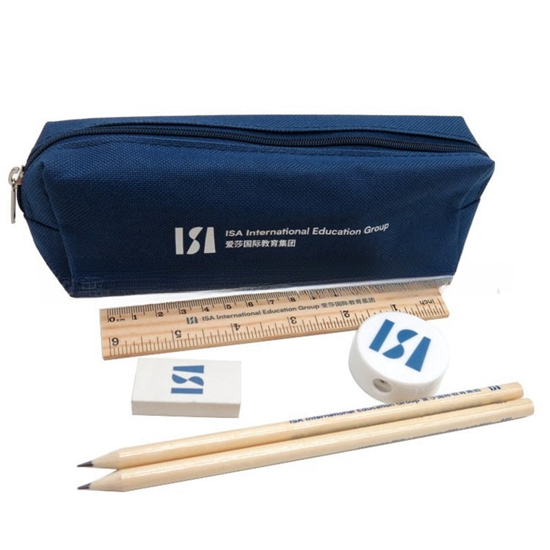 Your branding on this stationery set is sure to please all writers. The pouch is made of high-quality canvas, eco-friendly and durable, and can be used repeatedly. This handy stationery set includes pencils, erasers, rulers, pencil sharpeners, and more. Imprint your company’s name or logo on the pencil case and use this stationery set to promote new charter schools, bank branch openings, professional offices, distribution companies, and more! Measuring 8.26*2.75 inches, this custom customized stationery sets. Usage Scenarios: Office supplies, school stationery, corporate promotions, trade show giveaways. We offer logo printing and full packaging customization. Product Highlights: Portable, durable, practical for daily use.
