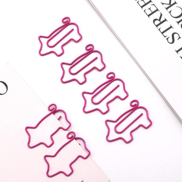 The lovely design and shiny appearance of the great paperclips will add extra color and more fun to your life, will bring you good mood. These paper clips are exquisite and durable. Made of premium stainless-steel materials, so they are not easy to rust and fracture, and can be used for a long time. These paper clips are very useful for documents, notebooks, scrapbooks and other office paper. Not easy to fade, simple design, but very cute, strong enough to clip paper well. Bring you fun and convenience during work in office, learning in school, daily use, etc. More materials for option, such as rubber coat, electroplating, PMS match painting, etc. Much packing methods for option, tin, small box, plastic pocket, etc. More information, please send your detailed request for quotation. Made from metal material, measuring 1.18*0.78 inches, this custom cute pig shaped paperclips. Usage Scenarios: Office supplies, school stationery, corporate promotions, trade show giveaways. Customization: Logo printing available with multiple packaging and color options. Product Highlights: Writable surface, lightweight, recyclable paper.