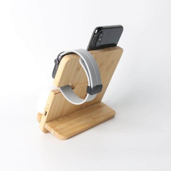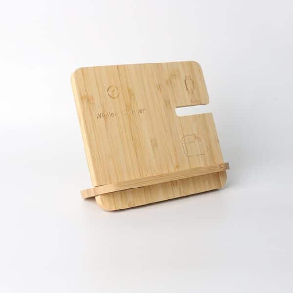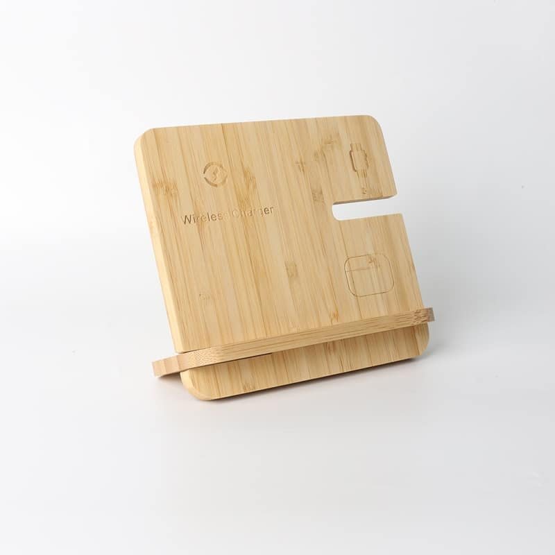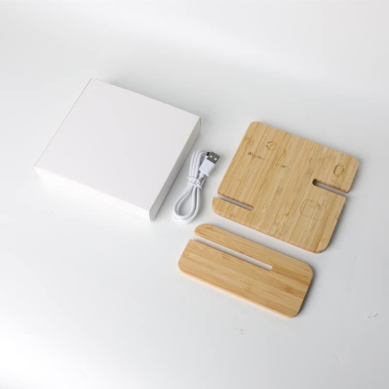 This wireless charger is perfect for use at home, in the office or even on the road. Additional imprinting options are available. Features Input: 9V/2A-3A; Output: 5W/7.5W/10W/15W.Requires Type-C connector (included). Charging distance = 9 mm. Made of sustainable bamboo. Only devices that support Qi wireless charging technology can be charged with this device. Sleek, modern, and eco-friendly renewable bamboo to better display your LOGO. Measuring 5.51*5.15*0.35 inches, this custom detachable 3-in-1 wireless charger 15w. Usage Scenarios: Office supplies, school stationery, corporate promotions, trade show giveaways. Customization available: Print your logo or customize packaging and color schemes. Product Highlights: Compact size, lightweight, easy to carry.