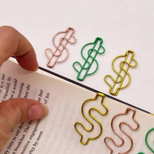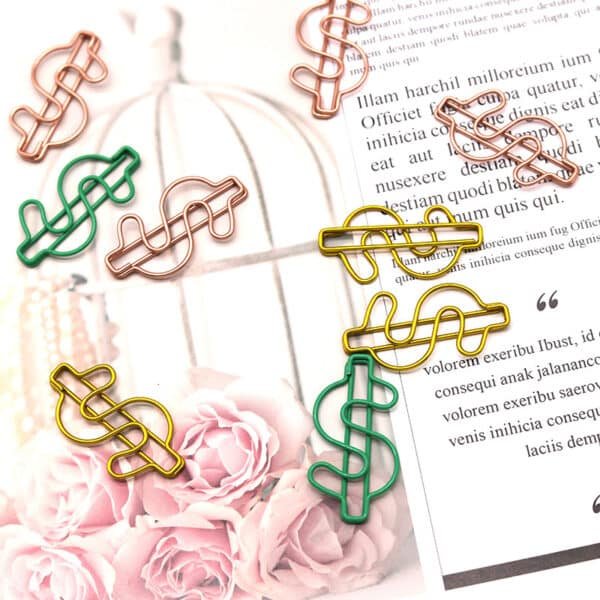 The lovely design and shiny appearance of the great paperclips will add extra color and more fun to your life, will bring you good mood. These paper clips are exquisite and durable. Made of premium stainless-steel materials, so they are not easy to rust and fracture, and can be used for a long time. These paper clips are very useful for documents, notebooks, scrapbooks and other office paper. Not easy to fade, simple design, but very cute, strong enough to clip paper well. Bring you fun and convenience during work in office, learning in school, daily use, etc. More materials for option, such as rubber coat, electroplating, PMS match painting, etc. Much packing methods for option, tin, small box, plastic pocket, etc. More information, please send your detailed request for quotation. Made from metal material, measuring 0.78*1.56 inches, this custom dollar shaped metal paperclips. Usage Scenarios: Office supplies, school stationery, corporate promotions, trade show giveaways. Tailored branding: Supports logo imprint and design personalization. Product Highlights: Writable surface, lightweight, recyclable paper.