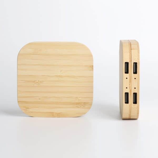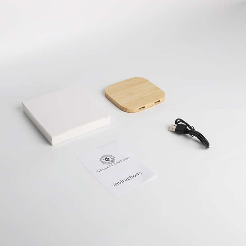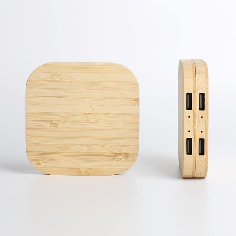 This wireless charger is perfect for use at home, in the office, or even on the road. Additional imprinting options are available. Features Input: 5V-2A 9V-2A 12V/2A; Output: 5W/10W/15W. requires a Type-C connector (included). Charging distance = 6 mm. Made of sustainable bamboo. Only devices that support Qi wireless charging technology can be charged with this device. Sleek, modern, and eco-friendly renewable bamboo, let us show off your logo with laser engraving or a full-color digital imprint. Measuring 3.58*3.58*0.35 inches, this custom dual usb cell phone wireless charger 5w. Usage Scenarios: Office supplies, school stationery, corporate promotions, trade show giveaways. We offer logo printing and full packaging customization. Product Highlights: Compact size, lightweight, easy to carry.