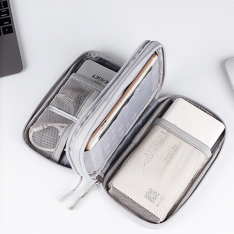 This zipper electronic organizer travel case made of high quality durable waterproof oxford and soft sponge inside to secure your gadgets in place and deliver a quick access whenever you want, a perfect case protects your electronics accessories. Dimensions 8.27 x 4.92 in. Compact size and lightweight design durable cable organizer pouch is a perfect choice when going on holiday, business trip, travel, office, school. Great gift for yourself also a nice share with families and friends. Double layers design, 2 layers interior compartment with enough space to take in your cords, cables, USB drive, cellphone, charger, mouse, flash drive, and other accessories. Comes with a comfortable hand strap for easy carrying. Made from oxford cloth material, measuring 8.27*4.92 inches, this custom electronic pouch organizer. Usage Scenarios: Office supplies, school stationery, corporate promotions, trade show giveaways. Customization available: Print your logo or customize packaging and color schemes. Product Highlights: Eco-friendly material, reusable, foldable for storage.