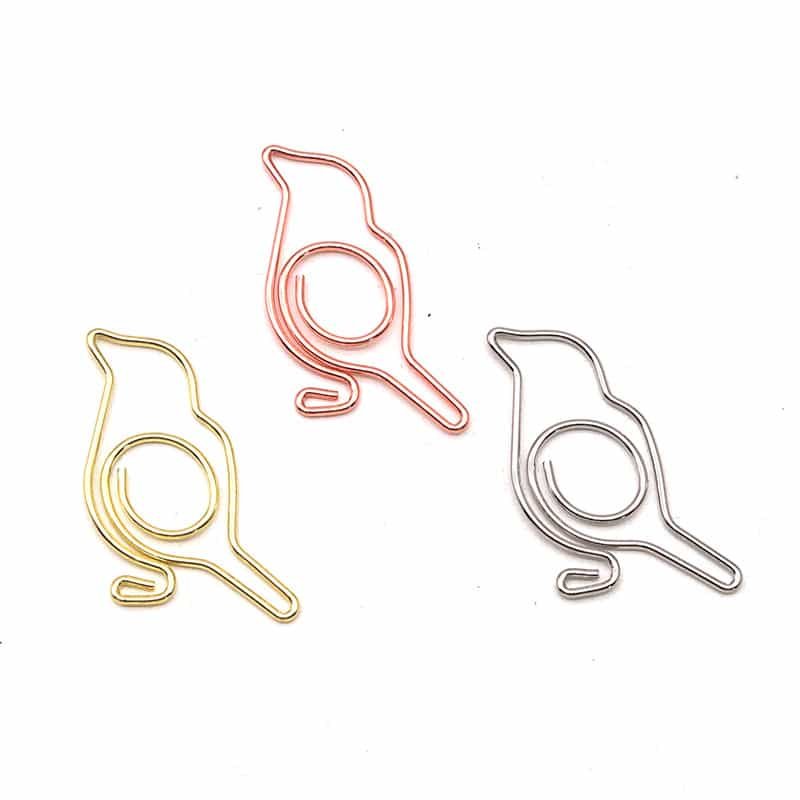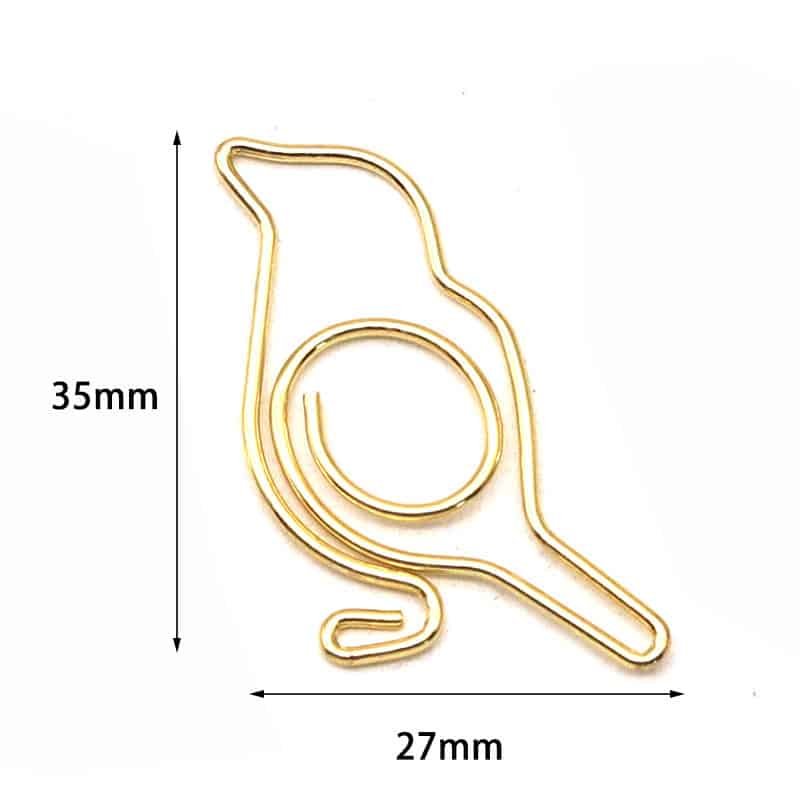 The lovely design and shiny appearance of the great paperclips will add extra color and more fun to your life, will bring you good mood. These paper clips are exquisite and durable. Made of premium stainless-steel materials, so they are not easy to rust and fracture, and can be used for a long time. These paper clips are very useful for documents, notebooks, scrapbooks and other office paper. Not easy to fade, simple design, but very cute, strong enough to clip paper well. Bring you fun and convenience during work in office, learning in school, daily use, etc. More materials for option, such as rubber coat, electroplating, PMS match painting, etc. Much packing methods for option, tin, small box, plastic pocket, etc. More information, please send your detailed request for quotation. Made from metal material, measuring 1.06*1.37 inches, this custom electroplating bird shaped metal paperclips. Usage Scenarios: Office supplies, school stationery, corporate promotions, trade show giveaways. Customization available: Print your logo or customize packaging and color schemes. Product Highlights: Writable surface, lightweight, recyclable paper.