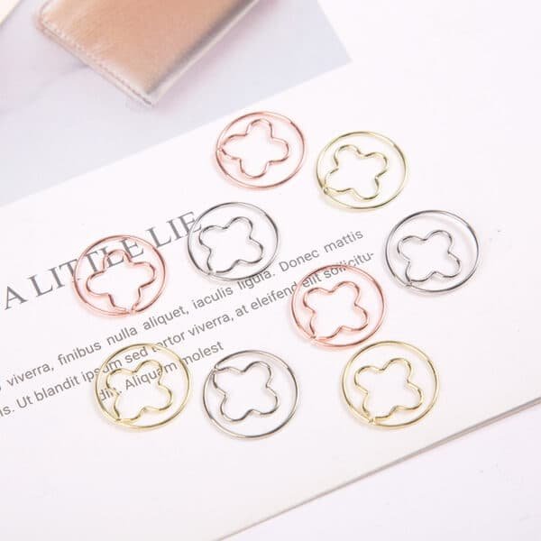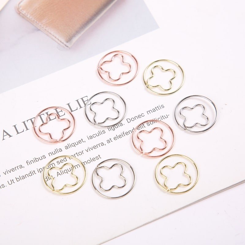 The lovely design and shiny appearance of the great paperclips will add extra color and more fun to your life, will bring you good mood. These paper clips are exquisite and durable. Made of premium stainless-steel materials, so they are not easy to rust and fracture, and can be used for a long time. These paper clips are very useful for documents, notebooks, scrapbooks and other office paper. Not easy to fade, simple design, but very cute, strong enough to clip paper well. Bring you fun and convenience during work in office, learning in school, daily use, etc. More materials for option, such as rubber coat, electroplating, PMS match painting, etc. Much packing methods for option, tin, small box, plastic pocket, etc. More information, please send your detailed request for quotation. Made from metal material, measuring 0.98*0.98 inches, this custom electroplating clover metal paperclips. Usage Scenarios: Office supplies, school stationery, corporate promotions, trade show giveaways. Customization: Logo printing available with multiple packaging and color options. Product Highlights: Writable surface, lightweight, recyclable paper.