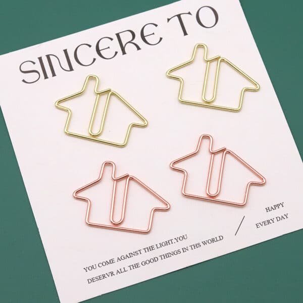 The lovely design and shiny appearance of the great paperclips will add extra color and more fun to your life, will bring you good mood. These paper clips are exquisite and durable. Made of premium stainless-steel materials, so they are not easy to rust and fracture, and can be used for a long time. These paper clips are very useful for documents, notebooks, scrapbooks and other office paper. Not easy to fade, simple design, but very cute, strong enough to clip paper well. Bring you fun and convenience during work in office, learning in school, daily use, etc. More materials for option, such as rubber coat, electroplating, PMS match painting, etc. Much packing methods for option, tin, small box, plastic pocket, etc. More information, please send your detailed request for quotation. Made from metal material, measuring 1.18*0.78 inches, this custom electroplating house shaped metal paperclips. Usage Scenarios: Office supplies, school stationery, corporate promotions, trade show giveaways. We offer logo printing and full packaging customization. Product Highlights: Writable surface, lightweight, recyclable paper.
