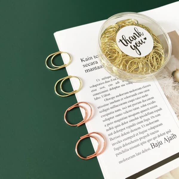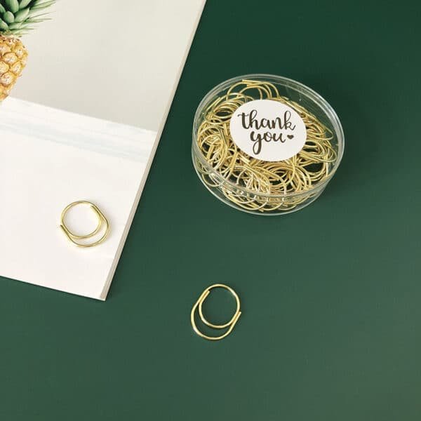 The lovely design and shiny appearance of the great paperclips will add extra color and more fun to your life, will bring you good mood. These paper clips are exquisite and durable. Made of premium stainless-steel materials, so they are not easy to rust and fracture, and can be used for a long time. These paper clips are very useful for documents, notebooks, scrapbooks and other office paper. Not easy to fade, simple design, but very cute, strong enough to clip paper well. Bring you fun and convenience during work in office, learning in school, daily use, etc. Add your own logo on the box and make it a great gift for your business. More information, please send your detailed request for quotation. Made from metal material, measuring 1.37*1.18 inches, this custom electroplating metal paperclips in a box. Usage Scenarios: Office supplies, school stationery, corporate promotions, trade show giveaways. Customization available: Print your logo or customize packaging and color schemes. Product Highlights: Writable surface, lightweight, recyclable paper.