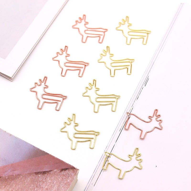 The lovely design and shiny appearance of the great paperclips will add extra color and more fun to your life, will bring you good mood. These paper clips are exquisite and durable. Made of premium stainless-steel materials, so they are not easy to rust and fracture, and can be used for a long time. These paper clips are very useful for documents, notebooks, scrapbooks and other office paper. Not easy to fade, simple design, but very cute, strong enough to clip paper well. Bring you fun and convenience during work in office, learning in school, daily use, etc. More materials for option, such as rubber coat, electroplating, PMS match painting, etc. Much packing methods for option, tin, small box, plastic pocket, etc. More information, please send your detailed request for quotation. Made from metal material, measuring 1.37*1.18 inches, this custom electroplating reindeer shaped metal paperclips. Usage Scenarios: Office supplies, school stationery, corporate promotions, trade show giveaways. Customization: Logo printing available with multiple packaging and color options. Product Highlights: Writable surface, lightweight, recyclable paper.