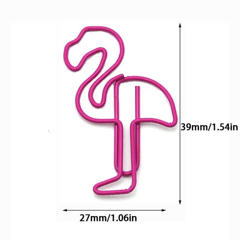 The lovely design and shiny appearance of the great paperclips will add extra color and more fun to your life, will bring you good mood. These paper clips are exquisite and durable. Made of premium stainless-steel materials, so they are not easy to rust and fracture, and can be used for a long time. These paper clips are very useful for documents, notebooks, scrapbooks and other office paper. Not easy to fade, simple design, but very cute, strong enough to clip paper well. Bring you fun and convenience during work in office, learning in school, daily use, etc. More materials for option, such as rubber coat, electroplating, PMS match painting, etc. Much packing methods for option, tin, small box, plastic pocket, etc. More information, please send your detailed request for quotation. Made from metal material, measuring 1.06*1.54 inches, this custom flamingo shaped metal paperclips. Usage Scenarios: Office supplies, school stationery, corporate promotions, trade show giveaways. Customization available: Print your logo or customize packaging and color schemes. Product Highlights: Writable surface, lightweight, recyclable paper.