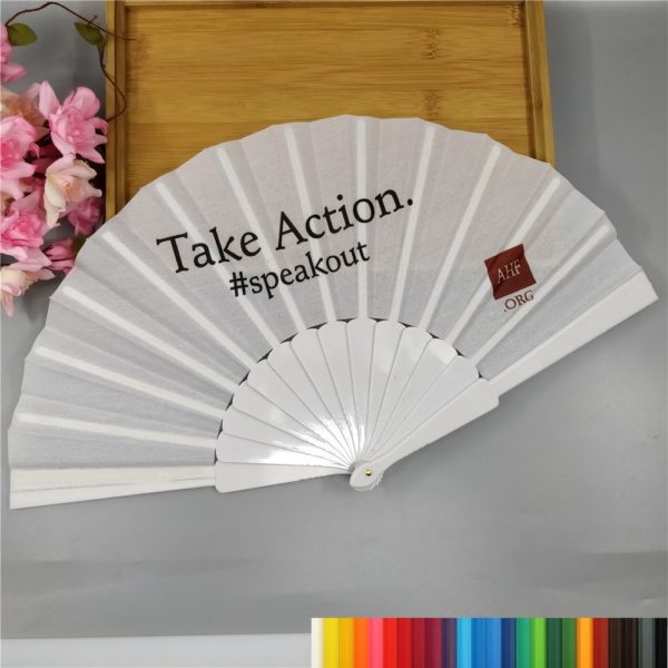 Cool yourself down with fashionable Asian flair using this folding hand fan. This 9- x 16- fan is made of silky smooth polyester fabric with a plastic frame, and folds down small enough to fit into the palm of your hand. This beautiful and delicate fan is sure to attract attention at any event at which you make them a gift or giveaway. Choose from a nearly unlimited array of beautiful colors and add your school, team, club, organizational or business logo or message to create a traditional branded promotional item with universal appeal that shows your public that they’re cool customers. Measuring 9 inches, this custom folding fabric hand fan. Usage Scenarios: Office supplies, school stationery, corporate promotions, trade show giveaways. Customization: Logo printing available with multiple packaging and color options. Product Highlights: Portable, durable, practical for daily use.