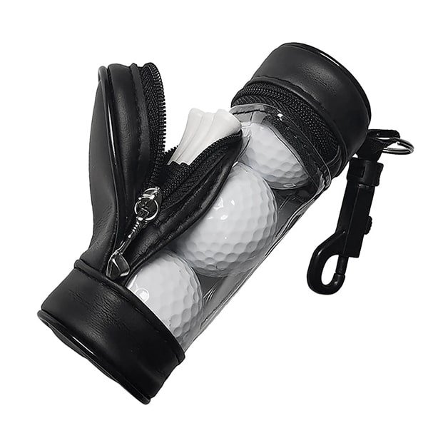 This portable golf ball carry bag with 3 golf balls and 3 teesis the perfect accessory for any golfer. It is designed to hold up to 3 golf balls and 3 tees, making it a convenient and practical way to store and transport your golf essentials. The compact size of the bag makes it easy to carry in your pocket or golf bag, so you can have your golf balls and tees within reach at all times. QTY for 20000pcs and over by ocean, rush service is available. Made from polyurethane material, measuring 5.1*1.8*1.8 inches, this custom golf balls and tees pouch bag.
