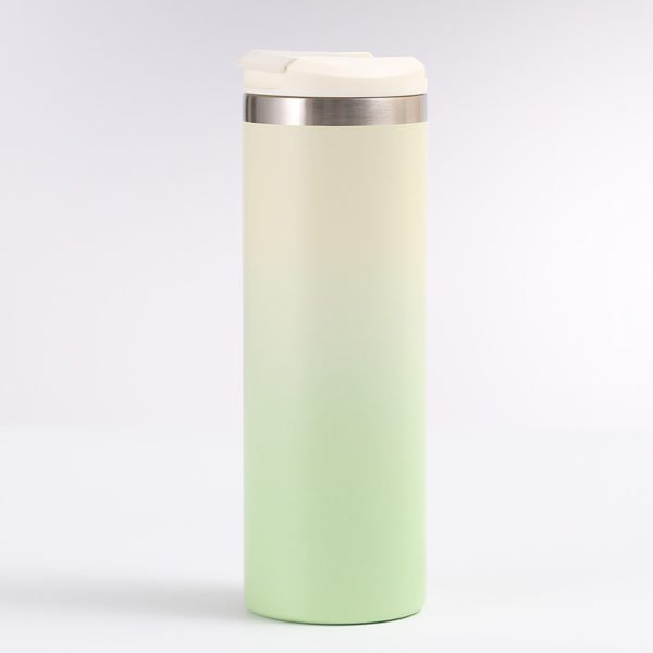 Gradient color high-value flip lid straight cup, high-value slender cup body, one hand can hold, one key flip lid design, open the lid to drink. Rounded cup mouth, the mouth of the cup fine polishing, close to the lips, silicone spiral seal, watertight. Selection of materials we are never sloppy, selected food-grade 304 material. Five layers of exquisite temperature locking process, effectively reduce heat transfer, to achieve long-lasting insulation capacity. Support customized patterns, text, logos, etc. Made from stainless steel material, measuring 2.8*8.3 inches, this custom gradient color flip-top insulated bottle 17oz. Usage Scenarios: Office supplies, school stationery, corporate promotions, trade show giveaways. Customization available: Print your logo or customize packaging and color schemes. Product Highlights: BPA-free, leak-proof, travel-friendly.