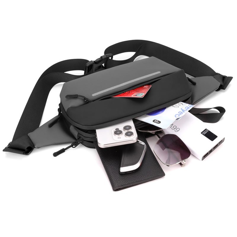 Introducing the Handled Multi-Pocket PU-Coated Fanny Pack, available in black, blue, dark green, and gray. Featuring a spacious main compartment with multiple dividers, a reflective strip for added safety, and a sturdy handle on the upper left corner. Crafted from water-resistant and durable PU-coated material, it can be used as a crossbody bag, waist bag, or handbag. Ideal for sports, fitness, travel, business events, promotions, trade shows, and daily use. Customize it with your logo to enhance your brand presence. Made from fabric material, measuring 9.45*6.30 inches, this custom handled multi-pocket pu-coated fanny pack. Usage Scenarios: Office supplies, school stationery, corporate promotions, trade show giveaways. We offer logo printing and full packaging customization. Product Highlights: Portable, durable, practical for daily use.