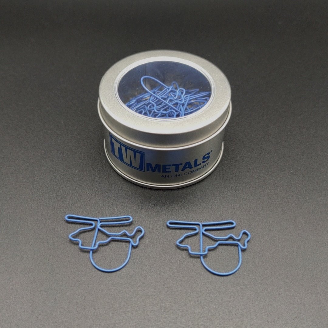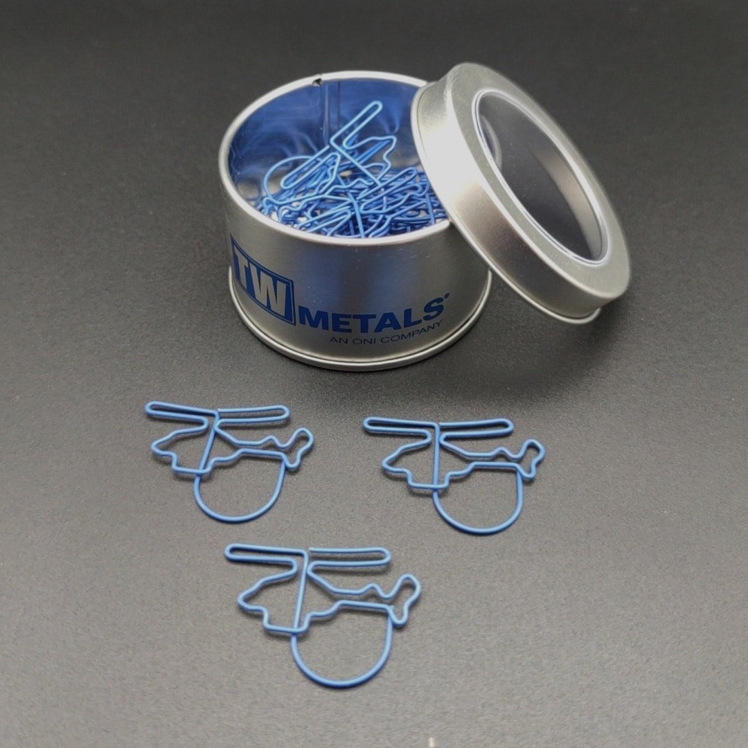 The lovely design and shiny appearance of the great paperclips will add extra color and more fun to your life, will bring you good mood. These paper clips are exquisite and durable. Made of premium stainless-steel materials, so they are not easy to rust and fracture, and can be used for a long time. These paper clips are very useful for documents, notebooks, scrapbooks and other office paper. Not easy to fade, simple design, but very cute, strong enough to clip paper well. Bring you fun and convenience during work in office, learning in school, daily use, etc. Add your own logo on the can and make it a great gift for your business. More information, please send your detailed request for quotation. Made from metal material, measuring 1.37*1.18 inches, this custom helicopter shaped metal paperclips in a can. Usage Scenarios: Office supplies, school stationery, corporate promotions, trade show giveaways. Customization available: Print your logo or customize packaging and color schemes. Product Highlights: Writable surface, lightweight, recyclable paper.