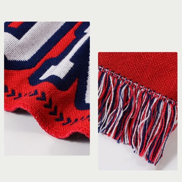 Made from a blend of 95% acrylic and 5% elastane. Stay warm and stylish in the cold weather with this delightful duo of accessories. Support your team, business or charity in style with a custom knitted scarf. Our scarves are tightly knitted on both sides to keep you warm at any event while displaying your logo. Made from acrylic fibre material, measuring 6.7*53 inches, this custom jacquard woven football scarf. Usage Scenarios: Office supplies, school stationery, corporate promotions, trade show giveaways. Customization available: Print your logo or customize packaging and color schemes. Product Highlights: Soft texture, foldable, breathable material.