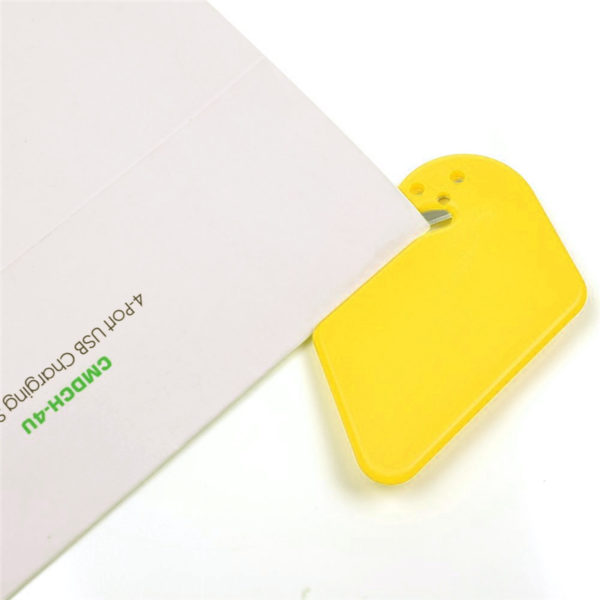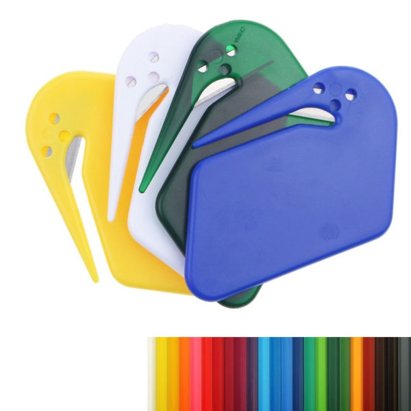 This letter opener is made of PS and it features with a concealed and razor sharp stainless steel blade which helps slice through envelopes effortlessly and safely.While the angled pointy tip is helpful to prevent paper jams and zip through envelopes easily.It’s light and tiny enough to slip into your pocket and it’s a perfect accessory for office,home,school etc.Customize your company logo for best brand publicity. Made from abs material, measuring 3.14*2.75 inches, this custom letter opener slitter blade razor.