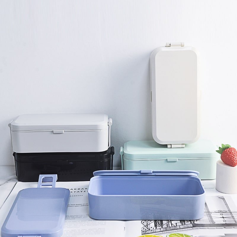 Fixed clips to prevent the lunch box from falling, fixed lunch box, easy to carry. Anti-slip design, safety protection, neatly discharged, wear-resistant and drop-resistant. R corner design, smooth and easy to clean, no burrs, comfortable to the touch. Silicone ventilation holes are designed, to be easy to open the ventilation holes to avoid the embarrassment and danger of expansion and bursting. The built-in silicone sealing ring prevents the soup from leaking and ensures delicious flavors are not lost. The portable lunch box is removable, and cleaned without leaving any dead corners, and more hygienic dining.