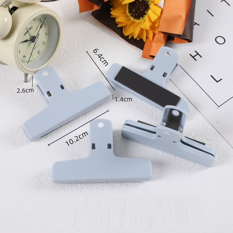 Multi-functional storage, suitable for a variety of tickets and other paper, strong bite, easy to clip, with a magnetic strip. Made of thickened HIPS material, not easy to damage, fall-proof, and crack-proof, quality is guaranteed. Miniature serrated teeth, firm grip, solid not to fall off the page, not easy to damage the paper, a piece of paper can also be easily clamped. Sealable detachable food bag, moisture-proof to extend storage time. Back magnet, clip suction dual-use, easily adsorbed in a variety of places with iron, strong magnetic suction, stable, and not easy to fall. Anti-slip texture on the top of the clip, a comfortable hand feeling. Simple and versatile design, with a variety of colors to choose from. Made from pp material, measuring 3.94*2.52 inches, this custom magnetic long tail plastic office clip.