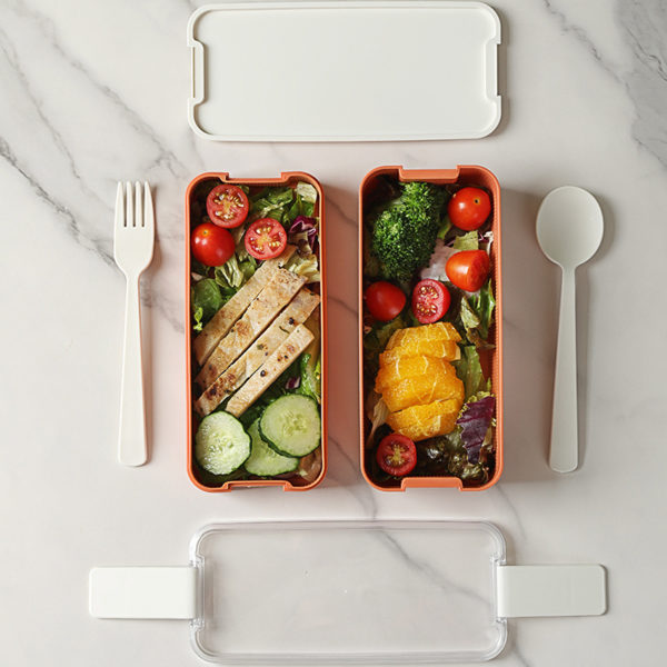Refuse takeout, eat healthy, double-layer double-button lunch box, and eat well even when you are busy. Double-layer packaging design, rational matching nutrition is more balanced. Self-contained tableware, no need to carry, convenient and quick. Sealed freshness, can be refrigerated to preserve the original flavor, microwave heating, rapid warming of meals. Both sides of the buckle have, a smooth and solid structure, strong load-bearing capacity, more comfortable to use. Food grade PP safety material can be in direct contact with food, safe and healthy. Measuring 7.09*3.35*3.15 inches, this custom microwaveable sealed lunch box. Usage Scenarios: Office supplies, school stationery, corporate promotions, trade show giveaways. We offer logo printing and full packaging customization. Product Highlights: Portable, durable, practical for daily use.